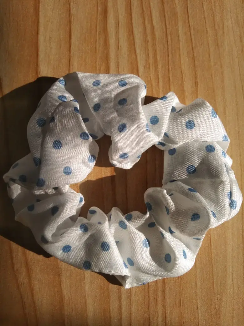 Beautiful White Blue Polka Dot Hair Scrunchies